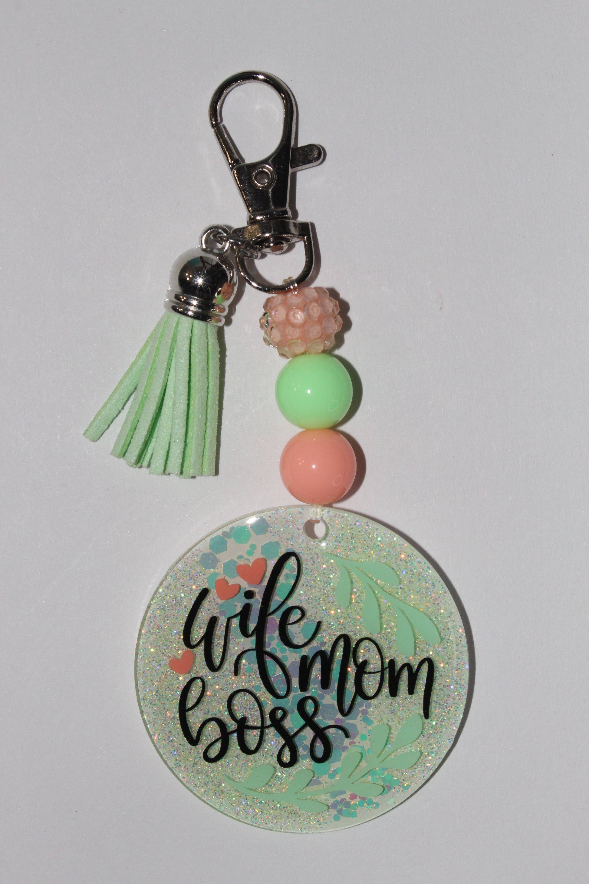 2" Wife Mom Boss Beaded Keychain