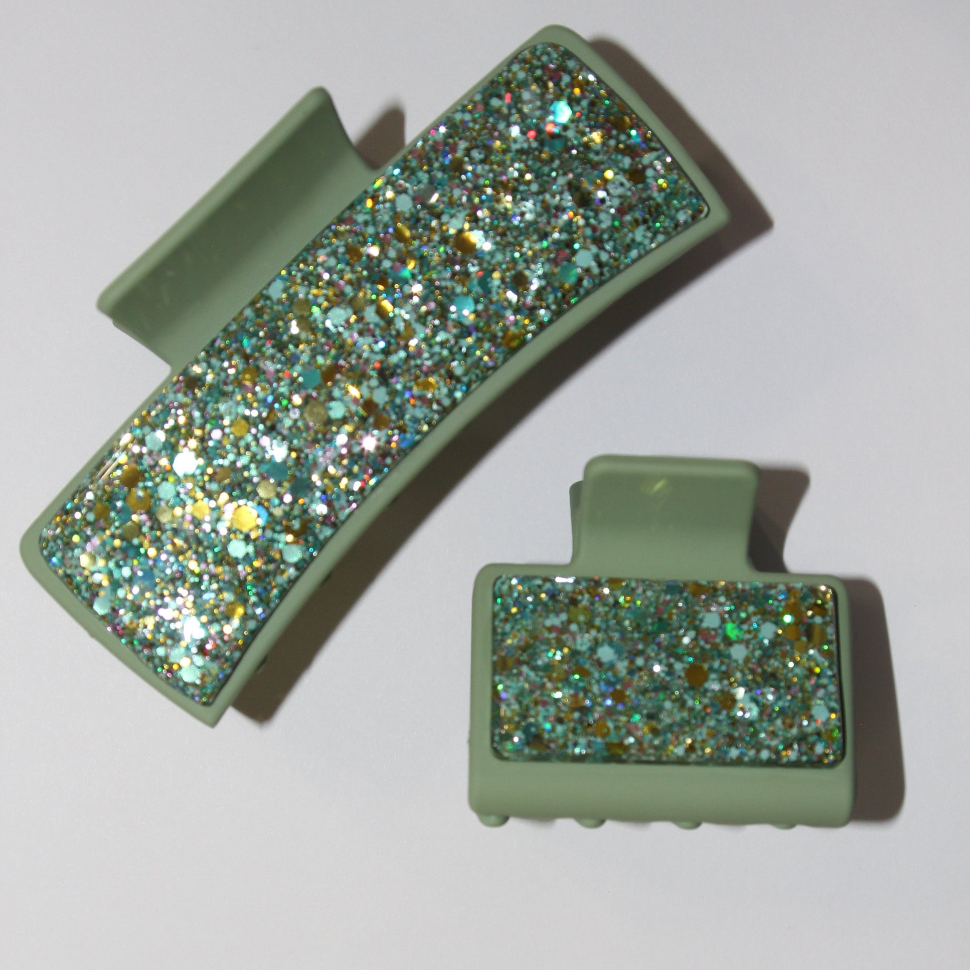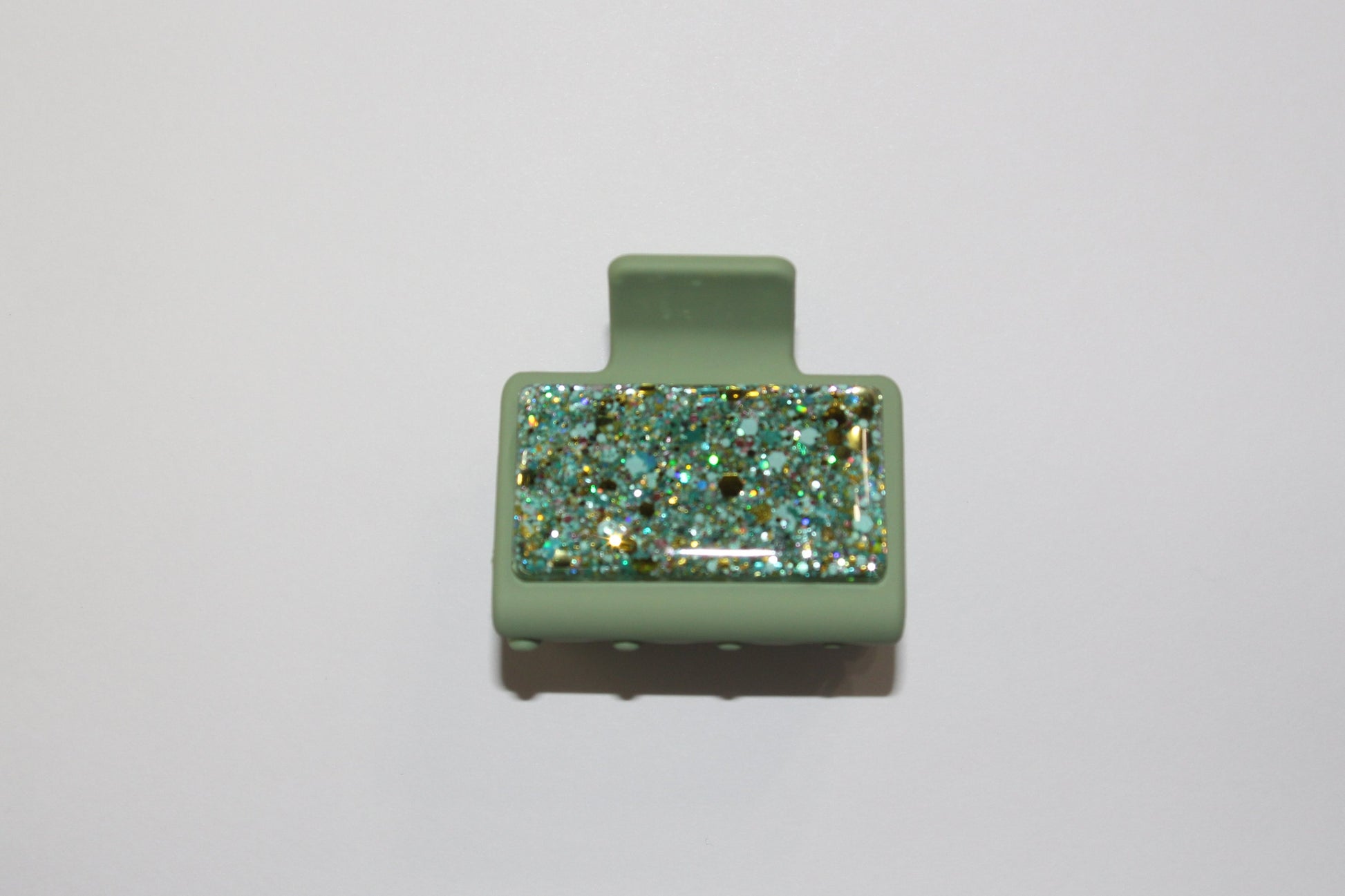 Throw your hair in a sparklicious hair claw clip and conquer the day. These are a fun, unique accessory that will combine functionality and style that effortlessly creates beauty and excitement to your look. What a cute and unique item for gifts. This item is 2 inches long, double sided to include the hair clip, acrylic piece, glitter, and resin.