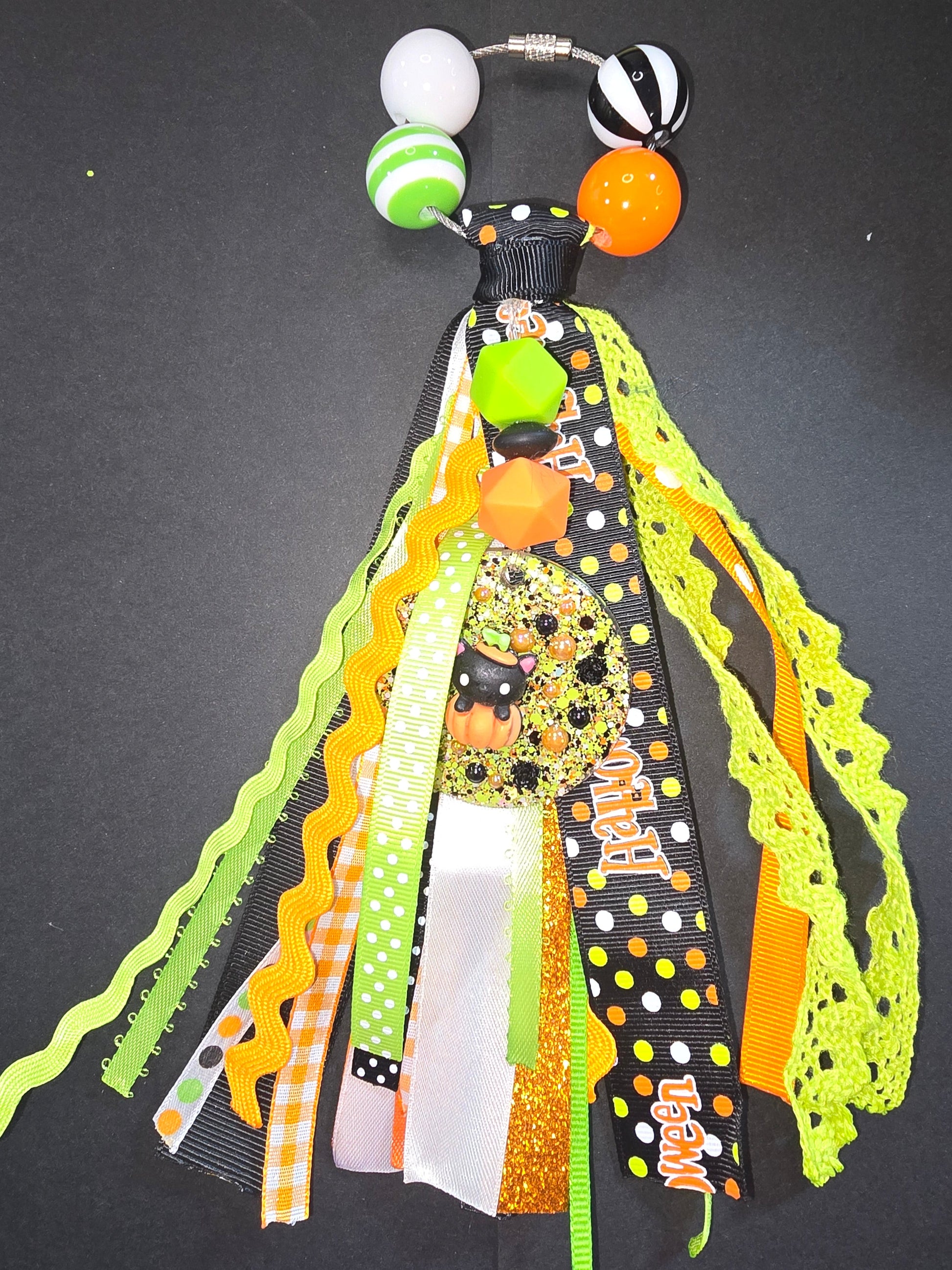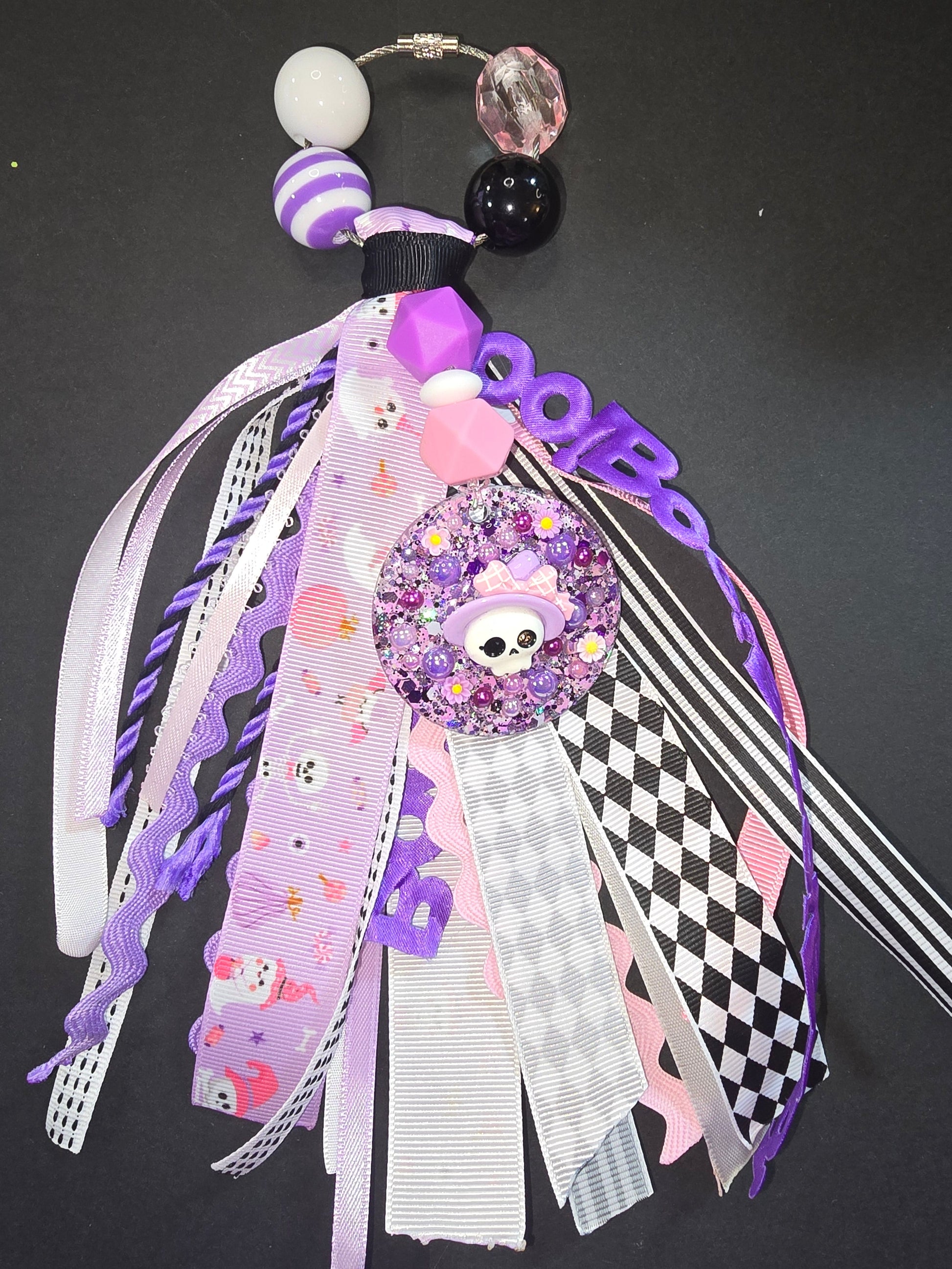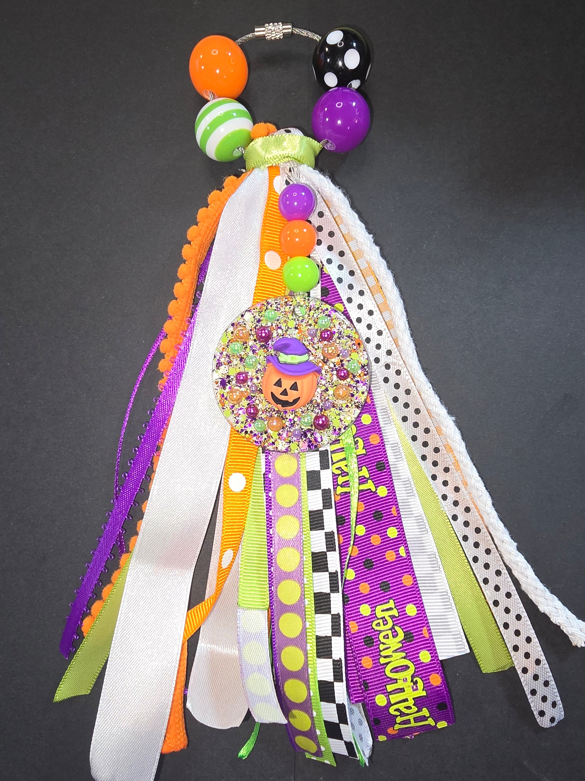 These tassels will look great on your bags! The ribbons hang approximately 6 to 8 inches. There is a clear acrylic tag a chosen design. The tassels hang onto your bag to make them easy to change out.