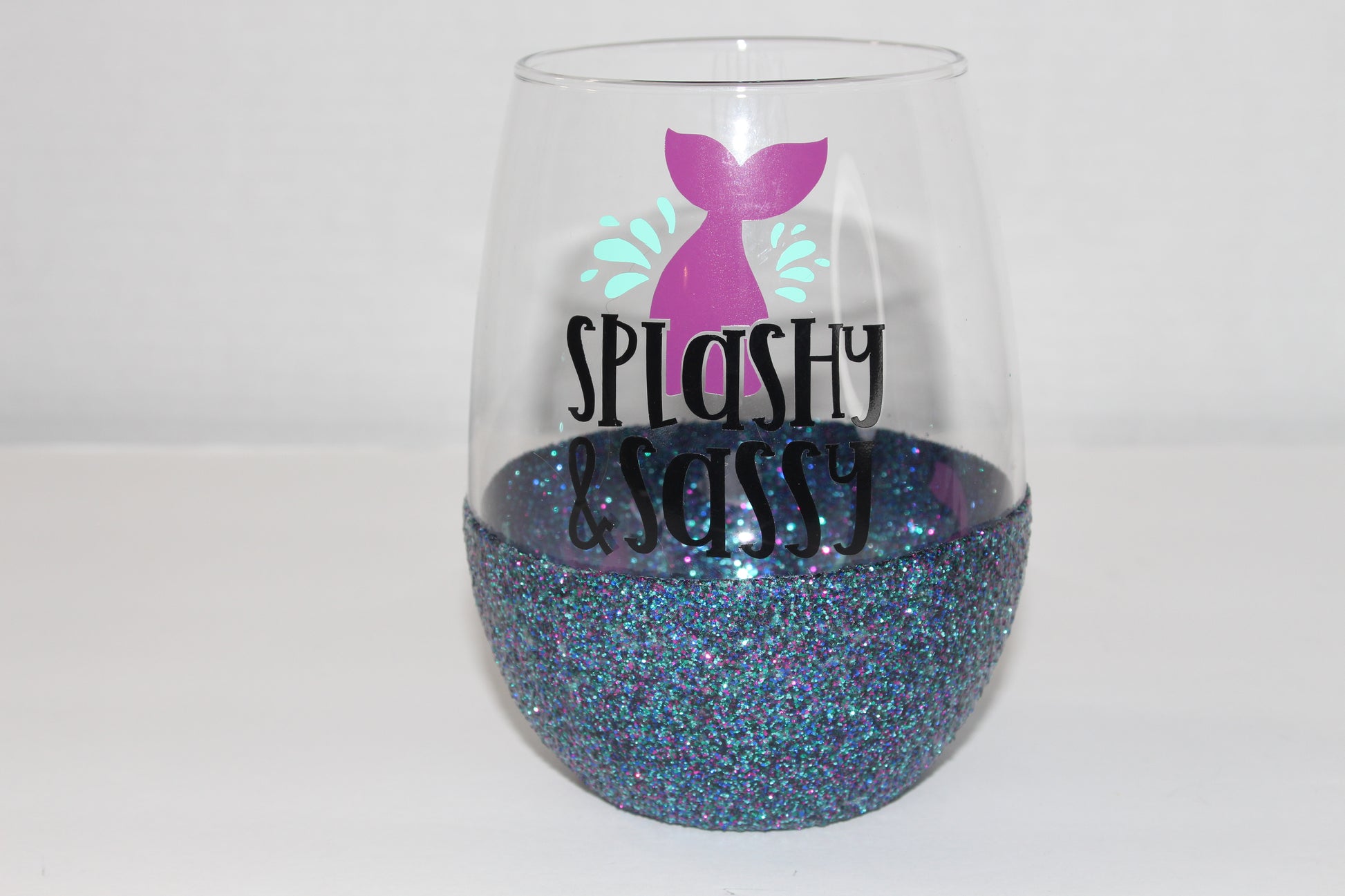 We all know a girl who loves to sparkle or maybe it is you. Add a touch of sparkle to your celebrations. Each glass is a 20.5 oz. stemless handcrafted wine glass. This glass is a Peek A Boo glass with an image inside the glass. Glitter is sealed and waterproof.